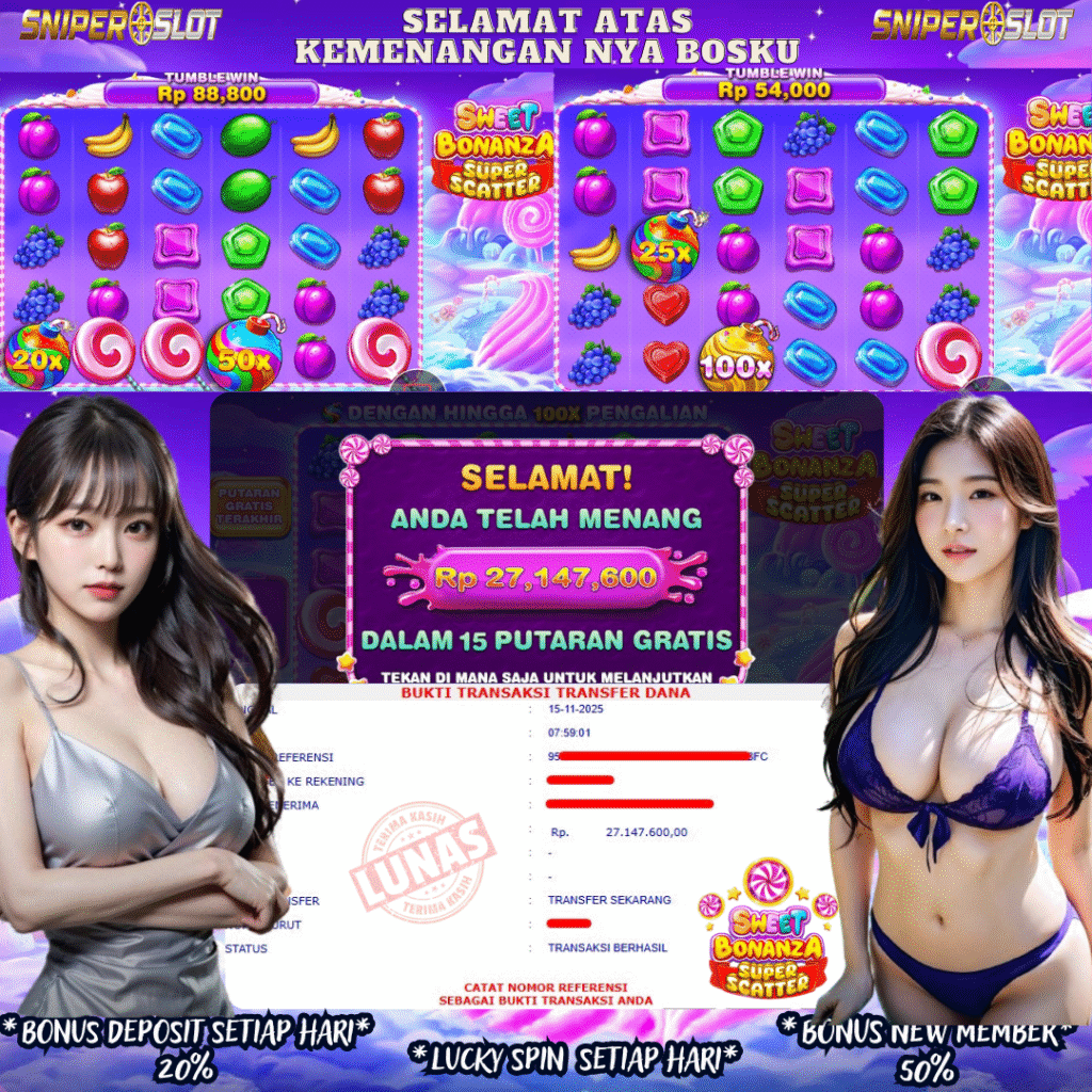 Selamat Kepada Member Setia SNIPERSLOT dengan USER ID : BAH****01 SWEET BONANZA SUPER SCATTER. RP 27.147.600,- di bayar LUNAS langsung mendarat ke rekening tanpa bertele – tele