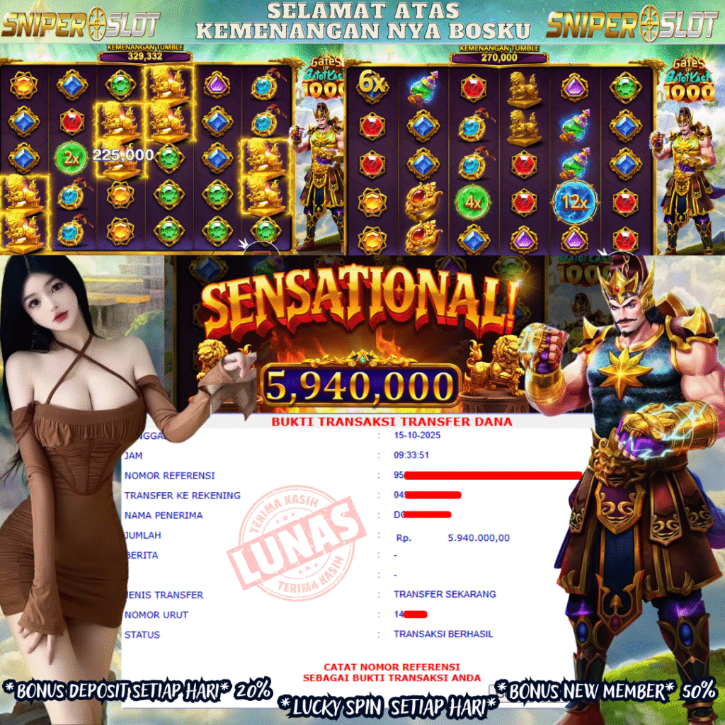 Selamat Kepada Member Setia SNIPERSLOT dengan USER ID : DOM**** Gates of Gatot Kaca 1000. RP 5.940.000,- di bayar LUNAS langsung mendarat ke rekening tanpa bertele – tele.