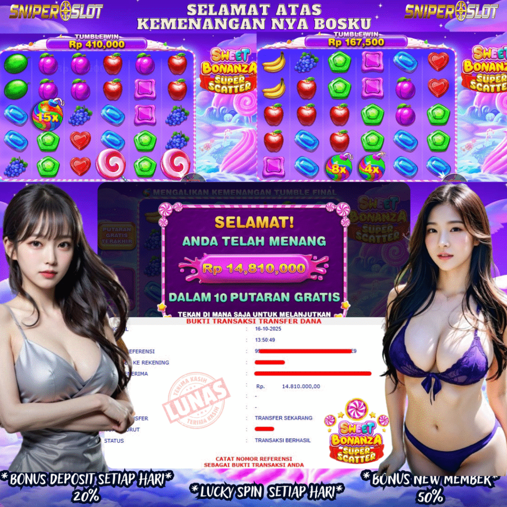 SNIPERSLOT MAXWIN SWEET BONANZA SUPER SCATTER, SEBESAR RP 14.810.000,DI BAYAR LUNAS