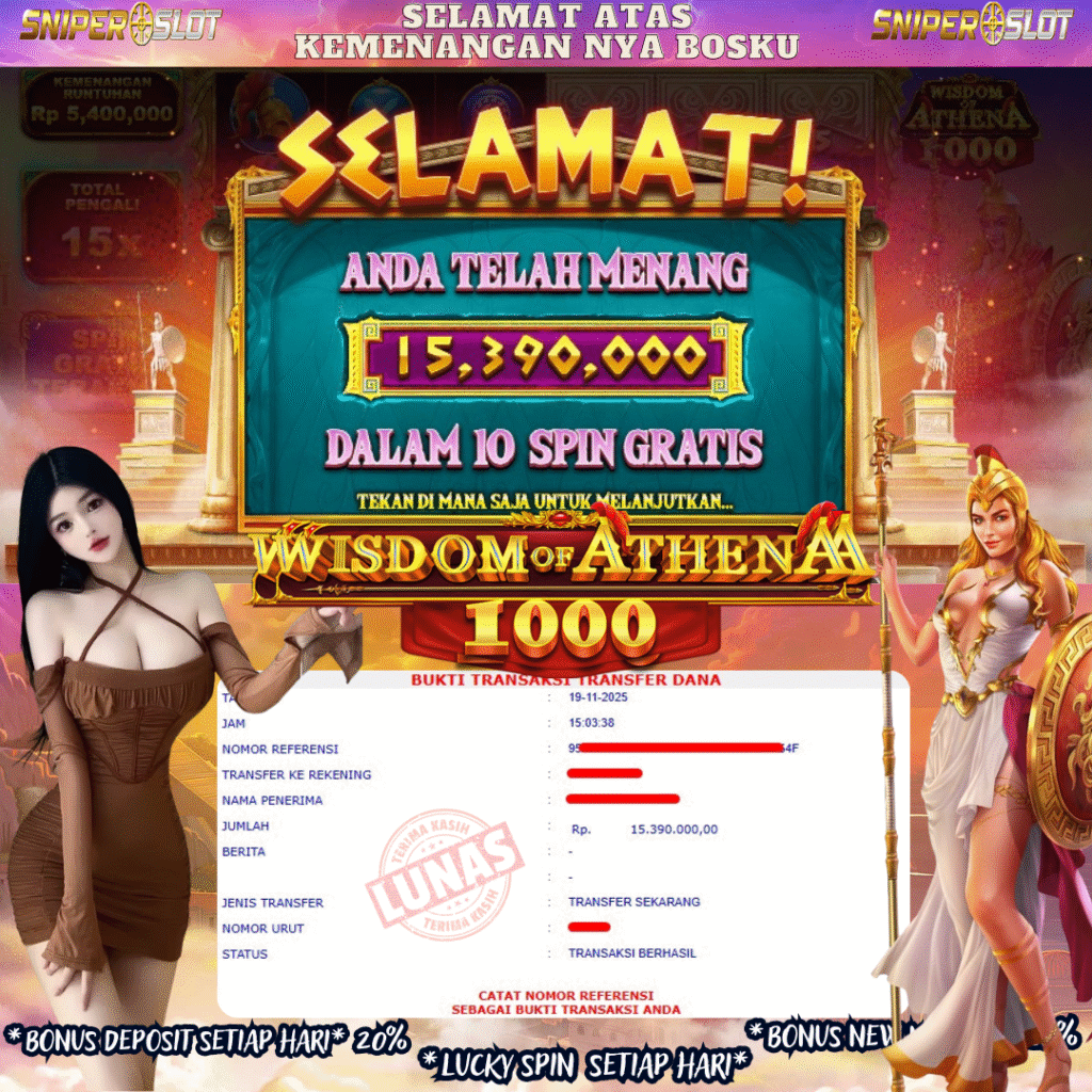 SNIPERSLOT MAXWIN WISDOM OF ATHENAA1000 , SEBESAR RP 15.390.000,DI BAYAR LUNAS