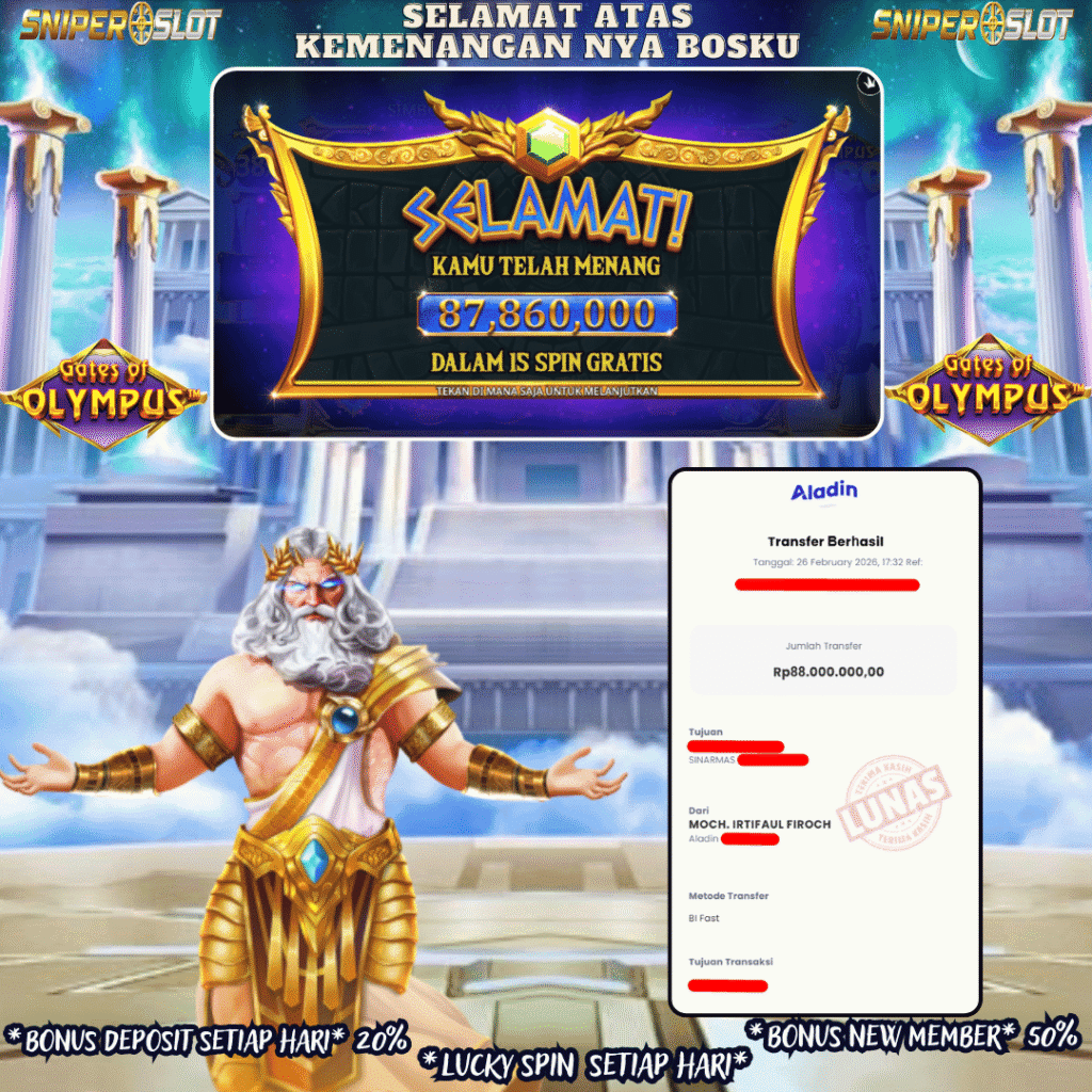 Selamat Kepada Member Setia SNIPERSLOT dengan USER ID : NE****3 MOLEIONAIRE. RP 41.820.000,- di bayar LUNAS langsung mendarat ke rekening tanpa bertele – tele